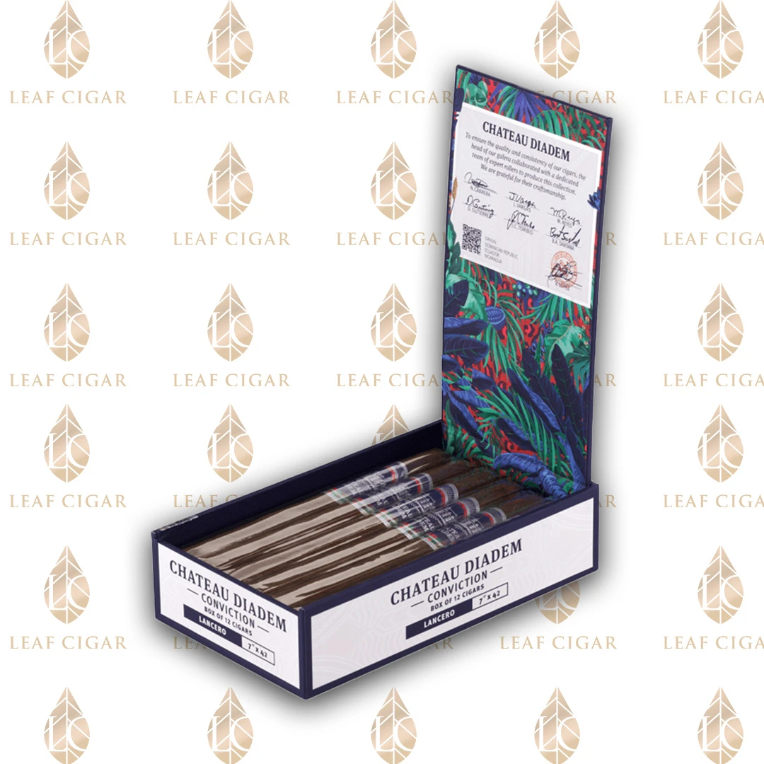 Το Château Diadem Lancero είναι ένα πολυτελές πούρο που συνθέτει την κομψότητα και τη δεξιοτεχνία. Το λεπτό και εκλεπτυσμένο σχήμα Lancero αναδεικνύει τις σύνθετες γεύσεις του premium μείγματος καπνού, προσφέροντας μια απαλή και ισορροπημένη εμπειρία καπνίσματος. Αναμείνετε πλούσιες νότες κέδρου, μπαχαρικών και μια νότα γλυκύτητας, όλα προσεκτικά επεξεργασμένα για να προσφέρουν μια αξέχαστη και εκλεπτυσμένη εμπειρία. Ιδανικό για τους λάτρεις που εκτιμούν την τέχνη ενός καλοφτιαγμένου πούρου, το Château Diademe Lancero είναι η επιλογή των πραγματικών aficionados.
